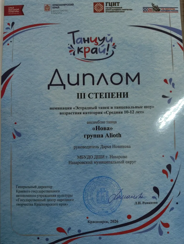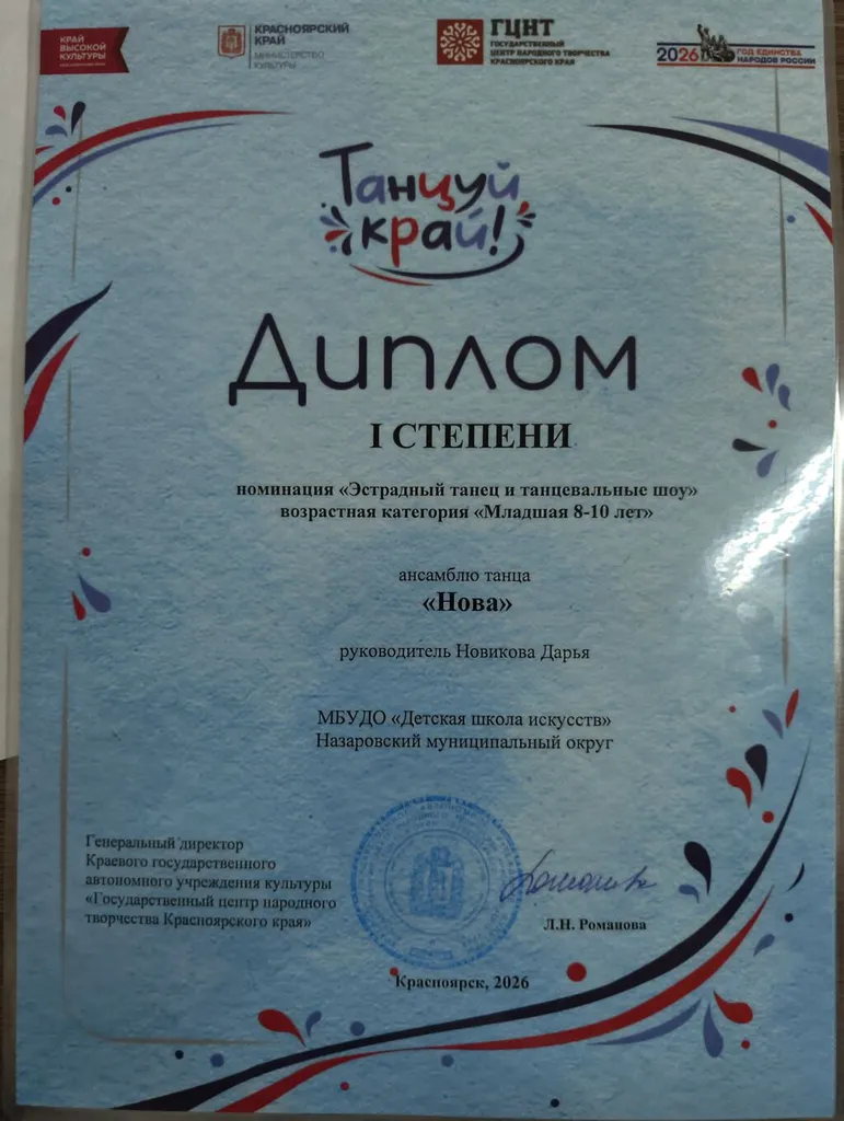 Поздравляем участниц коллектива и руководителя Новикову Дарью Александровну с прекрасными результатами! Желаем новых творческих достижений!